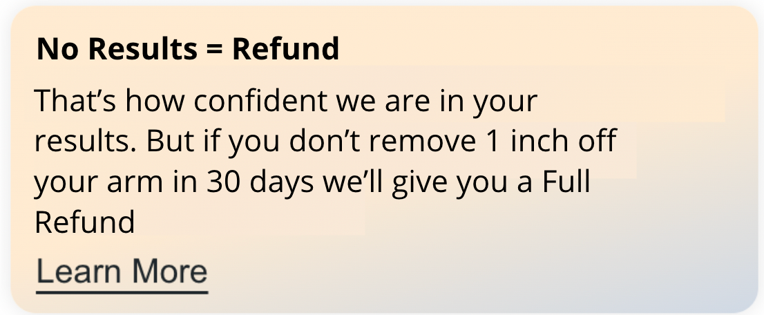 Visibly slimmer, firmer arms in 30 days — or your money back.Powered by QuadTech™: Red Light, Galvanic Current, Infrared Heat & Compression.